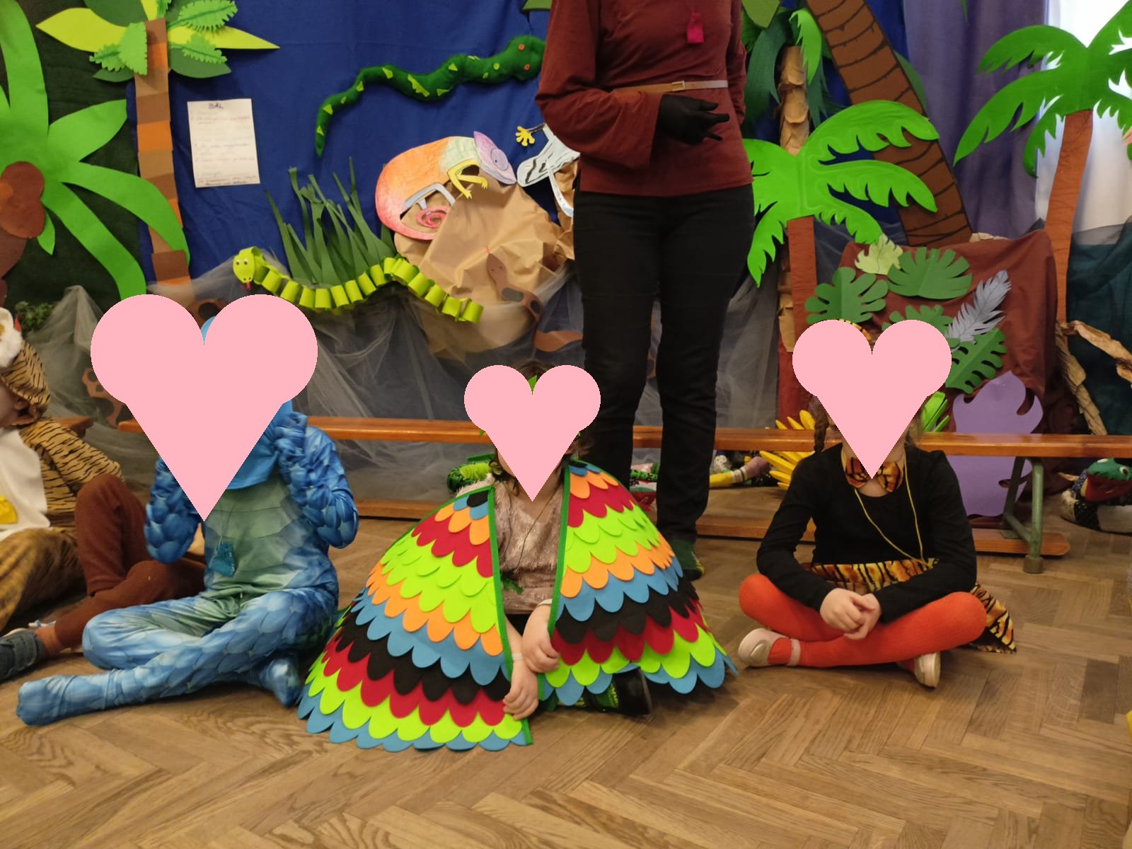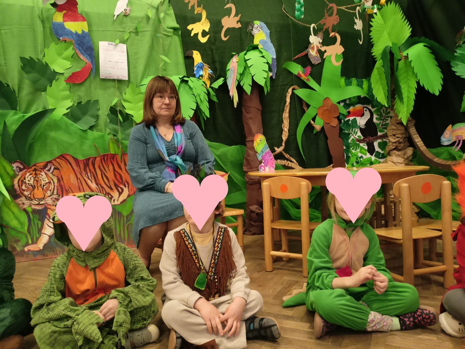 Sala balowa przeszła metamorfozę, stając się domem dla egzotycznych zwierząt i bujnej roślinności. To wszystko nie udałoby się bez ogromnego zaangażowania i kreatywności naszych Rodziców oraz Nauczycieli. Wspólnymi siłami stworzyliśmy przestrzeń, w której każde dziecko mogło poczuć się jak na prawdziwej wyprawie do Amazonii.